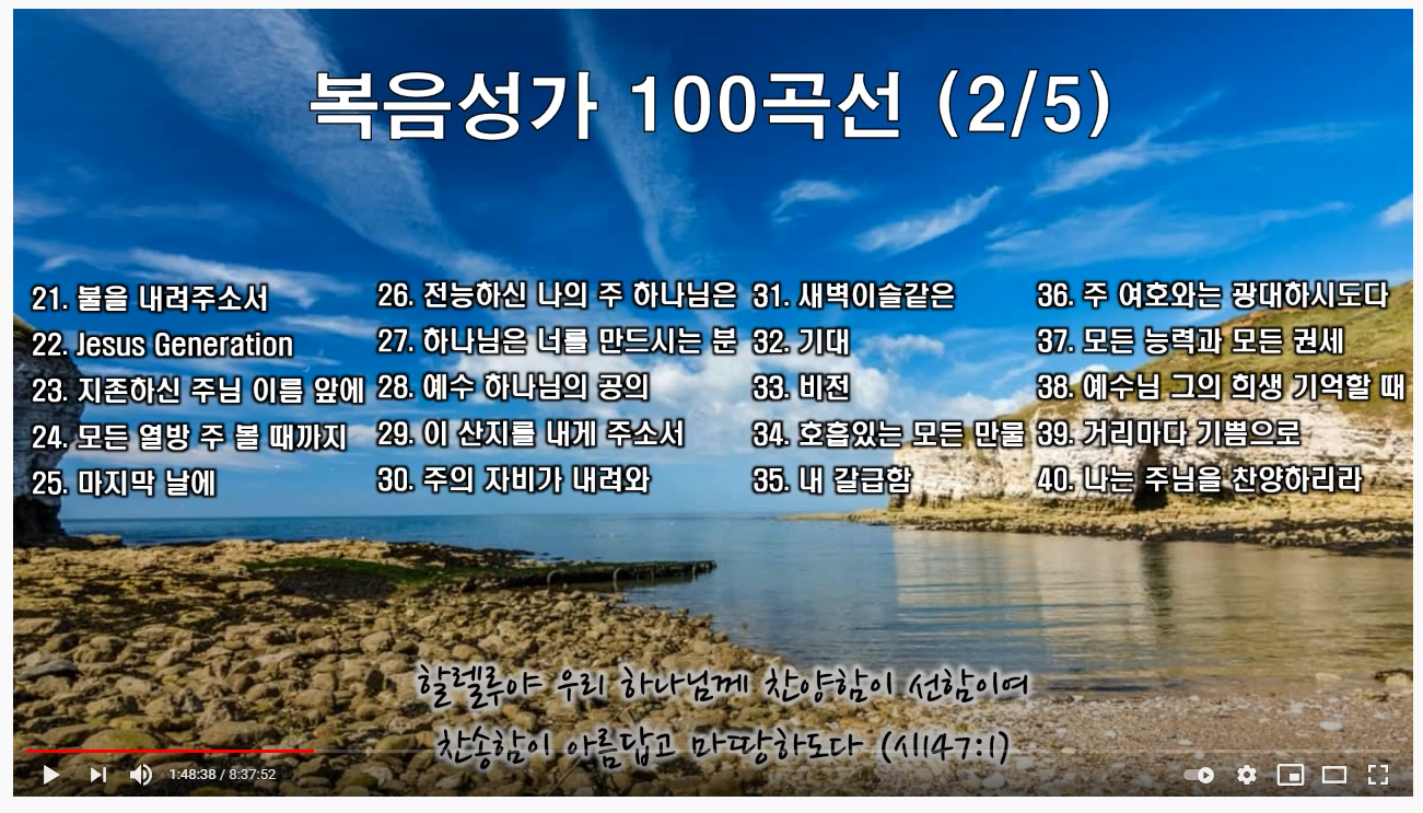안녕하세요, 오늘은 복음성가 100곡선 연속듣기 유튜브 링크 가져왔어요.