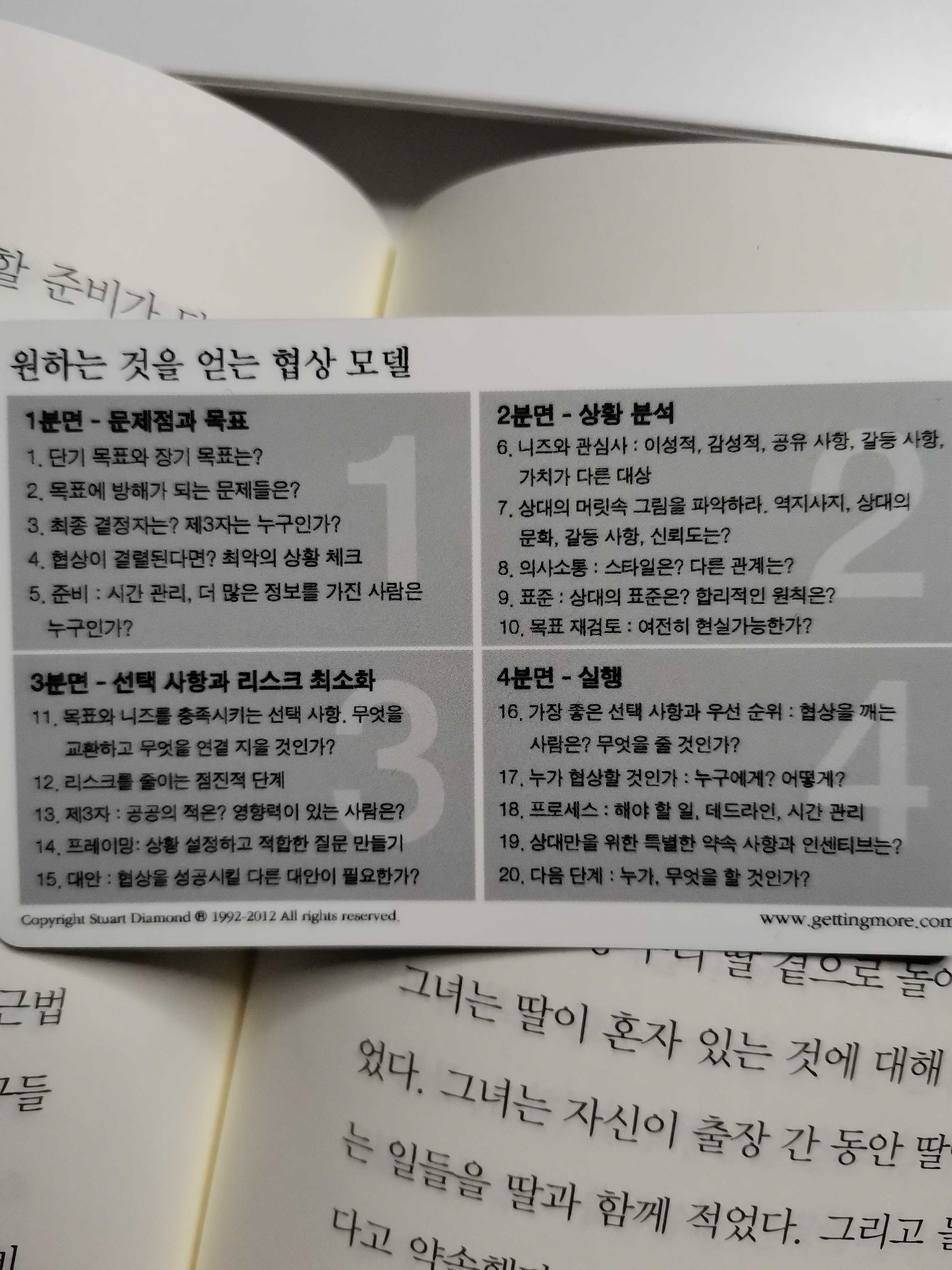 이 책에는 수많은 협상의 예가 나온다. 그 예들만 가만히 들여다봐도 어떻게 해야 효과적으로 더 많은 것을 얻을 수 있는지 감이 잡힌다. 이 책의 원제목은 "Getting More" 다.