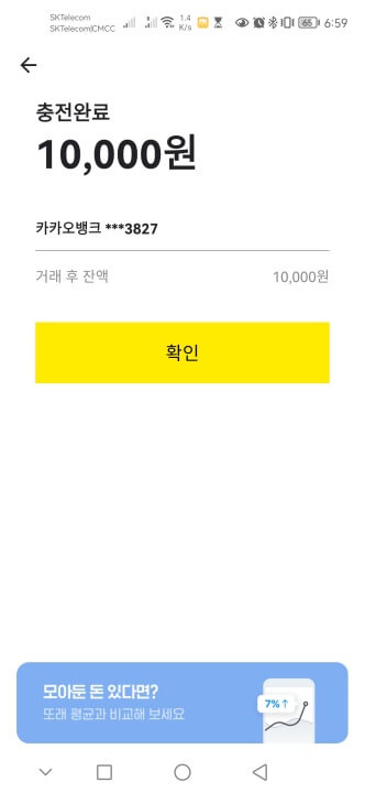 - 7,000원을 충전하려고 했지만 최소 1만원 이상 충전 가능이란 설명이 나오는군요. 10,000원을 충전했습니다.