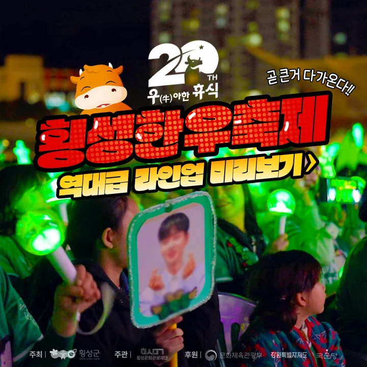 2024 횡성 한우축제는 대한민국에서 가장 유명한 소고기 축제 중 하나로, 한우의 본고장인 강원도 횡성군에서 개최됩니다. 올해로 20주년을 맞이한 횡성 한우축제는 10월 2일부터 10월 6일까지 진행되며, 다양한 먹거리와 체험, 문화 행사가 어우러져 관광객들에게 풍성한 즐길 거리를 제공합니다. 주제는 "우(牛)아한 휴식"으로, 가을의 아름다운 자연 속에서 최고급 횡성 한우를 맛보고, 휴식을 즐길 수 있는 프로그램들이 가득합니다.