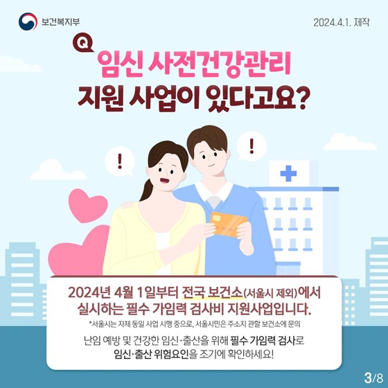 임신을 준비하는 부부들에게 이 제도는 중요한 지원을 제공하며, 미리 검사를 통해 건강 상태를 체크하고 필요한 관리와 치료를 받을 수 있는 좋은 기회입니다. 이를 통해 건강한 임신과 출산을 준비해보세요.
